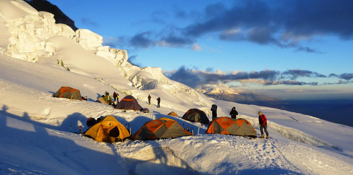 Salida después del desayuno continuando la ruta para pasar por las rocas hasta llegar al glaciar donde usaremos el material de escalada para poder llegar al campo uno situado a 5,300msnm donde pasaremos la noche sobre el glaciar.