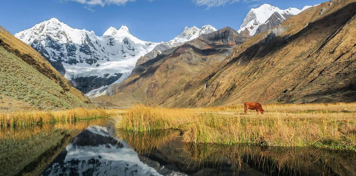 Después del desayuno empezaremos a caminar por el Valle de Jahuacocha hasta el Paso de Pampa Llamac (4300m). En este trayecto podremos observar por última vez la majestuosa Cordillera Huayhuash. Una vez que lleguemos al pueblo de Llamac, tomaremos el transporte que nos llevará de regreso a Huaraz.